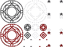 ■1マスx1マスの魔法円と魔法菱型、3マスx3マスの魔法円のマップチップ(黒、白、赤の3色)